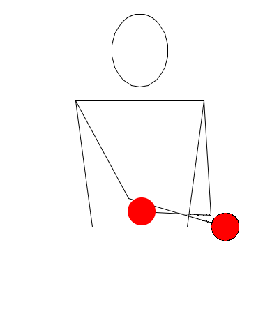 each hand, arms crossed. Throw the first ball as you uncross your arms, and
